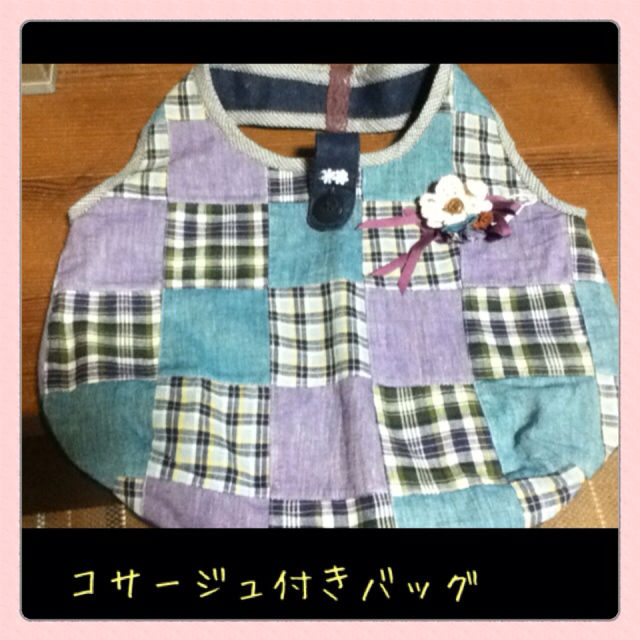 取り外せるコサージュがついた可愛い形のバッグです。1000円。